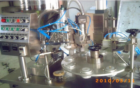 Αυτή η μηχανή αποτελείται από το ανοξείδωτο. Οι διαδικασίες εργασίας ελέγχονται από τα κουμπιά. Τέτοιες διαδικασίες περιλαμβάνουν τη χειρωνακτική σίτιση σωλήνων, την αυτόματη στροφή 8 σωλήνας-θέσης, την πλήρωση δελτίων τροφίμων, την αυτόματη κοπή και τη θέρμανση & τη σφράγιση. Όλες οι διαδικασίες είναι κουμπί που ελέγχεται από τον κύλινδρο. Ο γεμίζοντας όγκος είναι εύκολο να ρυθμιστεί και η γεμίζοντας ταχύτητα είναι δυνάμενη να ξορδισθεί. Αυτή η μηχανή χρησιμοποιείται για να γεμίσει και να σφραγίσει όλα τα είδη πλαστικών και τοποθετημένων σε στρώματα σωλήνων. Η εμφάνιση της σφράγισης είναι τακτοποιημένη και σταθερή. Σύμφωνα με τα διαφορετικά υλικά, μπορούμε να επιλέξουμε το κατάλληλο σύστημα θέρμανσης.
