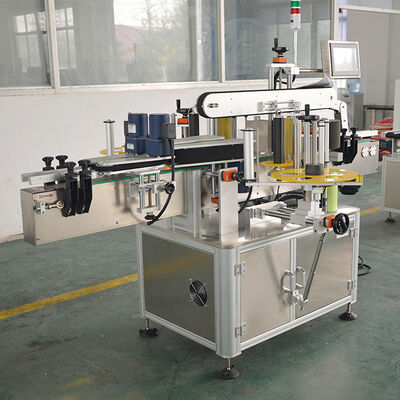 Αυτόματη γραμμή για το μαρκάρισμα γύρω από τα εμπορευματοκιβώτια, με την οθόνη αφής PLC. Μπορέστε να προσαρμοστείτε ανάλογα με τα μπουκάλια και τις ετικέτες του πελάτη.